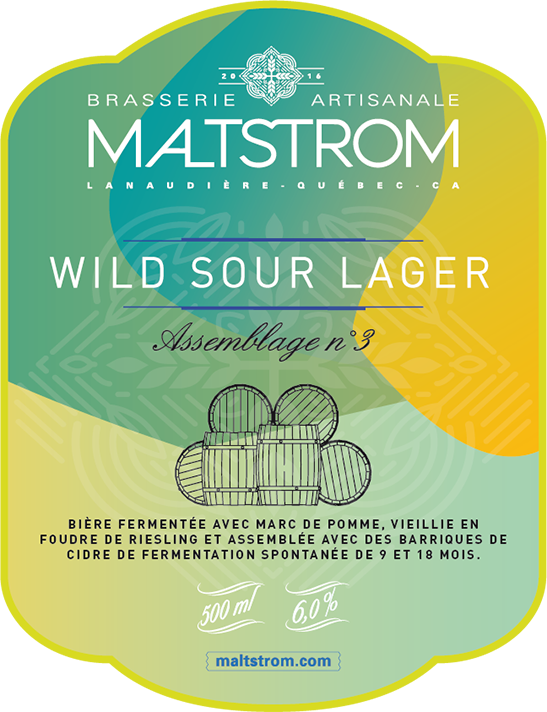 Wild lager vieillie en foudre de Riesling sur du marc de pomme local (Qui sème récolte) et assemblée avec de la barrique de jus de pomme fermenté spontané pendant 9 à 18 mois.
